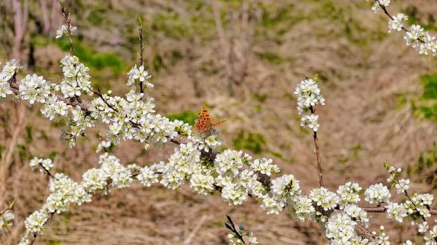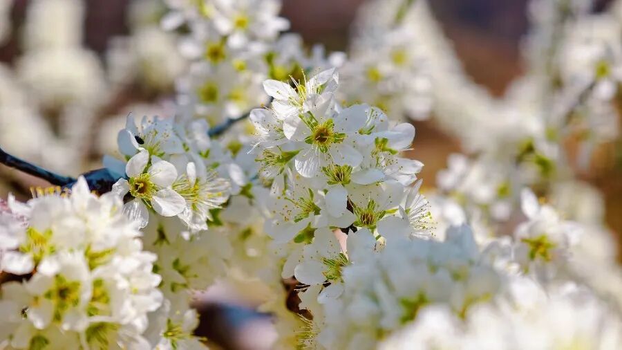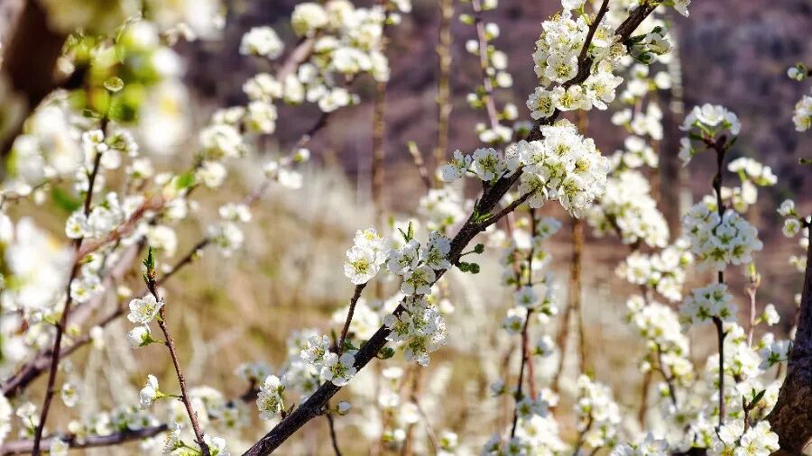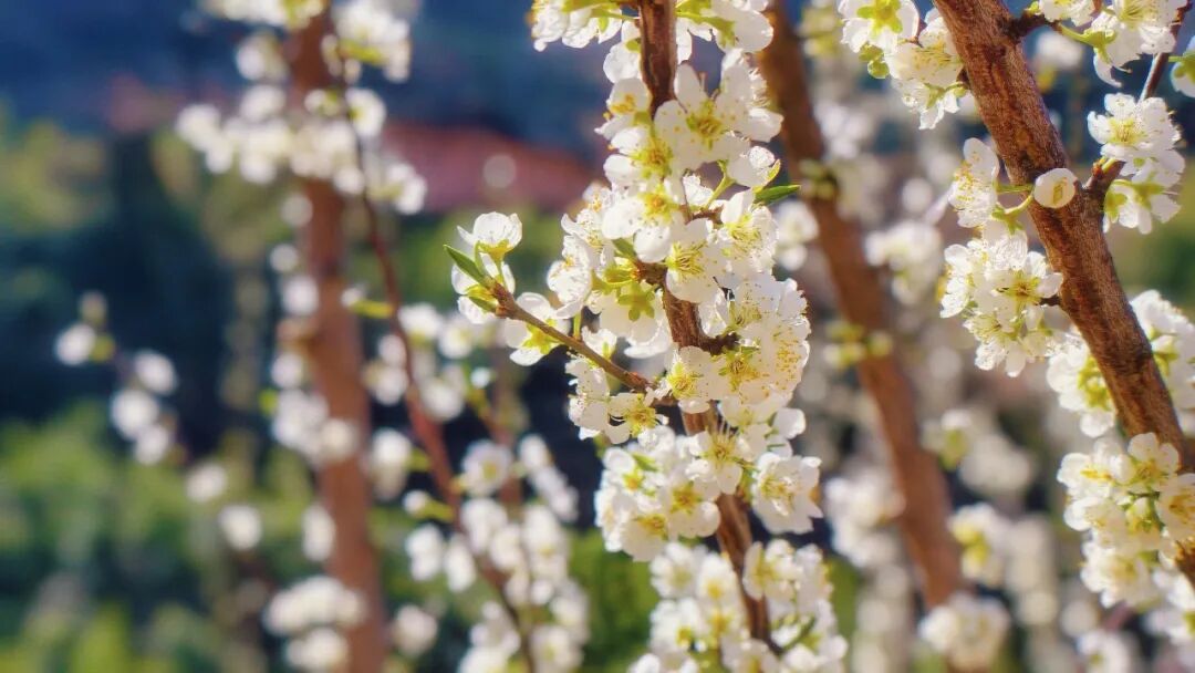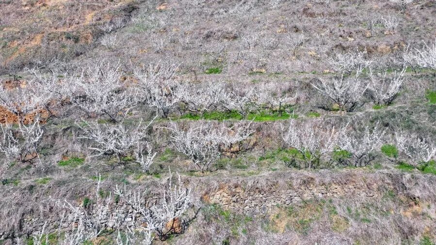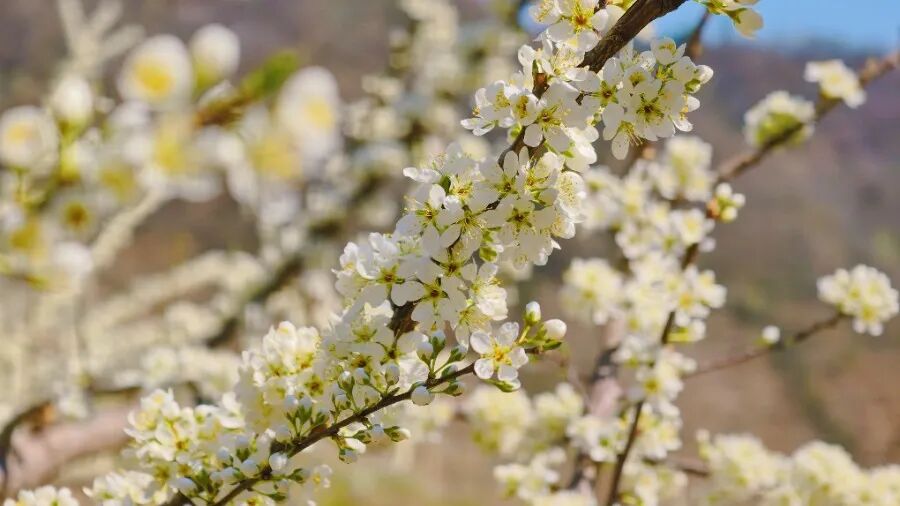 漫山遍野的李花竞相绽放