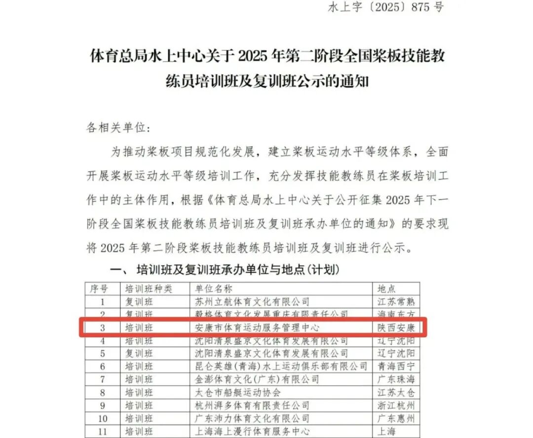 注:培训讲师将由国家体育总局水上运动管理中心统一选派。