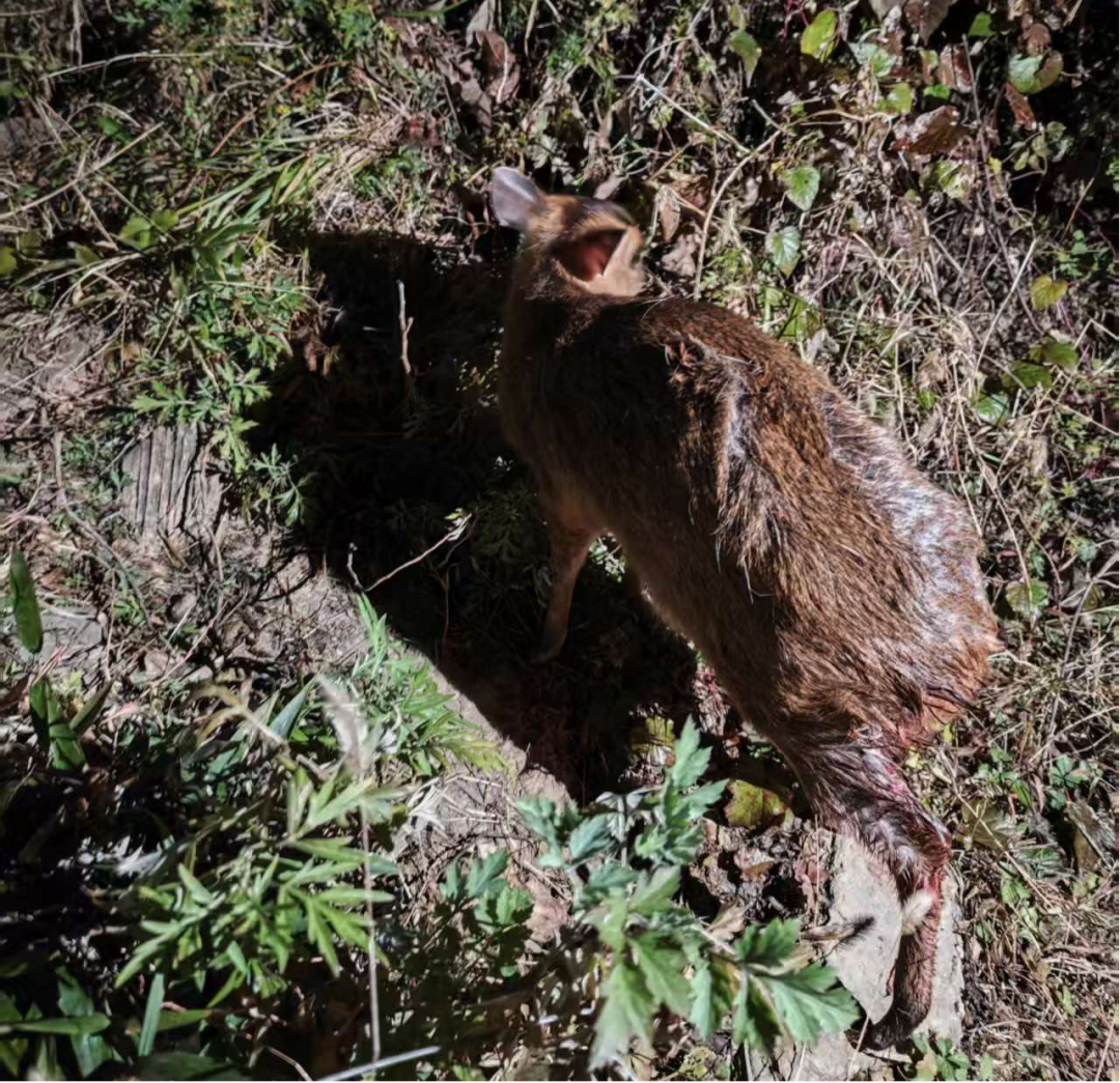 12月17日上午11点,叶坪镇干部葛大利下村途中突遇一只受伤的麂子,约4-6月龄,6公斤左右,全身棕黄,后腿有5公分破裂伤。农业农村服务中心立即将受伤的小麂送往卫生院清创、消毒、上药。因环境的改变,其恐惧、应激逃生的本能,使其不断冲撞,救助不宜长时间留置,晚上10点左右,观察其伤口已凝固,生态体征良好,选择在其被发现的路口将麂子放生。