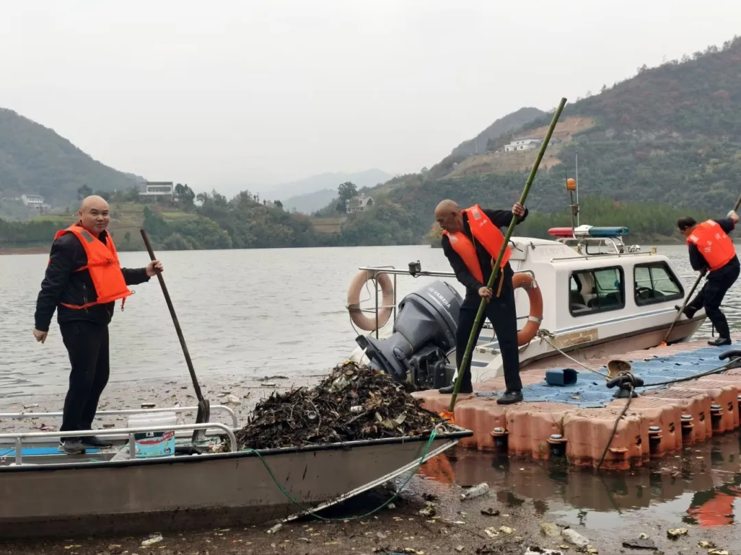 清晨的黄石滩水库水面波光粼粼,打捞船缓缓划过,工作人员熟练捞起转运枯枝落叶。这是水库常态化生态管护的缩影,更是守护区域水源地安全的生动实践。