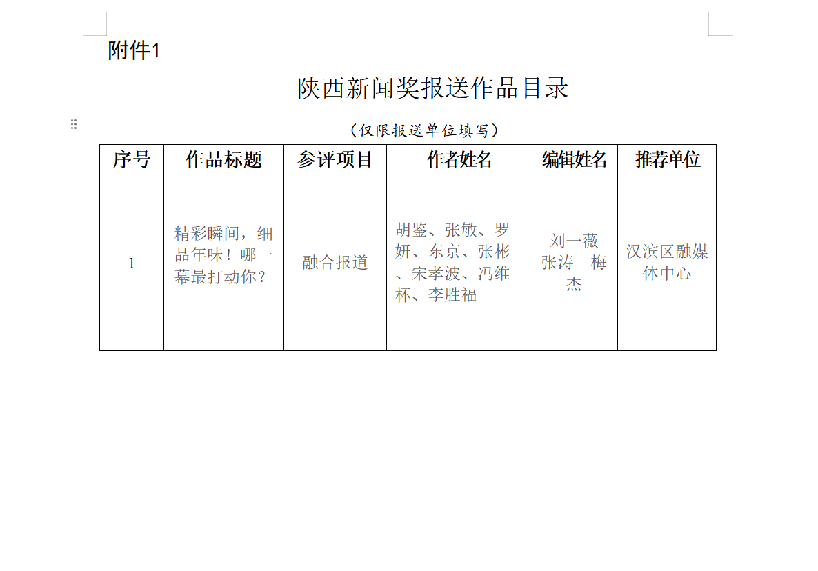 根据陕西省记协新媒体专业委员会印发《关于开展2025年度陕西新闻奖融合报道、应用创新和新媒体新闻专栏作品推优工作的通知》要求,汉滨区融媒体中心及时转发了作品推荐通知,要求各级各部门积极推荐参评作品,截止1月4日,共收到融合报道项目类新闻作品6件,经初评,因受推荐作品类型和数量限制等因素,故拟推荐参评作品1件。