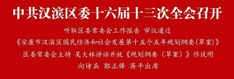 12月22日,中国共产党安康市汉滨区第十六届委员会第十三次全体会议召开。 全会以习近平新时代中国特色社会主义思想为指导,深入学习贯彻党的二十届四中全会精神和习近平总书记历次来陕考察重要讲话重要指示,全面落实省委十四届九次全会和市委五届十次全会部署要求,听取区委常委会工作报告,审议通过《安康市汉滨区国民经济和社会发展第十五个五年规划纲要(草案)》,部署当前和今后一个时期的重点任务,达到了统一思想、坚定信心、明确任务、凝聚力量的目的。 全会由区委常委会主持。区委书记吴大林讲话并就《规划纲要(草案)》向全会作了说明。区委副书记、区长向诗兵,区人大常委会主任郭正锋,区政协主席蒋平出席会议。 全会充分肯定今年以来区委常委会的工作。一致认为,今年以来,全区上下深入学习贯彻党的二十大和二十届历次全会精神,贯通落实习近平总书记来陕考察重要讲话重要指示,全面落实党中央和省委、市委部署要求,扎实开展深入贯彻中央八项规定精神学习教育,深化拓展“三个年”活动,聚力打好“八场硬仗”,扎实推进“七个提升”,经济运行稳中向好,改革开放创新不断深化,脱贫攻坚成果持续巩固,城乡融合发展更趋协调,民主法治建设扎实推进,宣传思想文化工作全面加强,生态环境质量持续改善,民生福祉稳步提升,社会大局和谐稳定,全面从严治党向纵深发展,各项事业取得新进展新成效。 会议指出,“十五五”时期在基本实现社会主义现代化进程中具有承前启后的重要地位,是汉滨区夯实基础、全面发力、突破提升、转型提效的关键五年。全区上下要把思想和行动统一到党中央对形势的科学判断上来,把准大势、抢抓机遇,争先争优、创新创效,奋力谱写汉滨高质量发展新篇章。 会议强调,“十五五”时期汉滨经济社会发展,必须坚持马克思列宁主义、毛泽东思想、邓小平理论、“三个代表”重要思想、科学发展观,全面贯彻习近平新时代中国特色社会主义思想,深入贯彻党的二十大和二十届历次全会精神,深入落实习近平总书记历次来陕考察重要讲话重要指示,贯通落实“五个扎实”“五项要求”“四个着力”,锚定“全市舞龙头、全省争上游”总体目标,坚持“生态优先、绿色发展、创新驱动”路径,实施“四区联动、融合发展,三区一域、协同发展”战略,奋力把汉滨建设成为全国富硒产业高质量发展示范区、国家康养旅游示范区、秦巴区域商贸物流中心、全省绿色低碳发展示范区、全省社会治理先行区。 吴大林强调,要把学习贯彻党的二十届四中全会精神作为当前和今后一个时期的重要政治任务,学深悟透把准精神实质,对标对表优化思路举措,真抓实干推动落地见效,做到学思用贯通、知信行统一。要奋力推动经济社会现代化建设,在创新驱动、改革开放、绿色发展、城乡融合、文化事业、安全稳定上聚焦发力,聚力打造现代化产业体系,激发内生动力与市场活力,筑牢生态屏障,提升城乡品质,繁荣文化事业,守牢安全底线。要持之以恒推进全面从严治党,铸牢政治忠诚,建强干部队伍,夯实基层堡垒,锤炼过硬作风,巩固风清气正的政治生态。要集中精力抓好岁末年初各项工作,全力冲刺年度目标,抓实问题整改与民生兜底,守牢安全稳定防线,谋划好明年工作,为实现“十五五”良好开局奠定坚实基础。 区委副书记贺富莉、蒋志龙,区委常委曾海尧、冯荣平、杨飞、李杰伟、向成城、陈光胜、万冲、周石磊,区委委员、区委候补委员出席会议。不是区委委员、区委候补委员的区级领导,区纪委常委、监委委员,各镇(街道)党(工)委书记,区直部门、人民团体、有关驻区单位、区属国有企业主要负责同志,部分基层党代表、人大代表、政协委员列席会议。